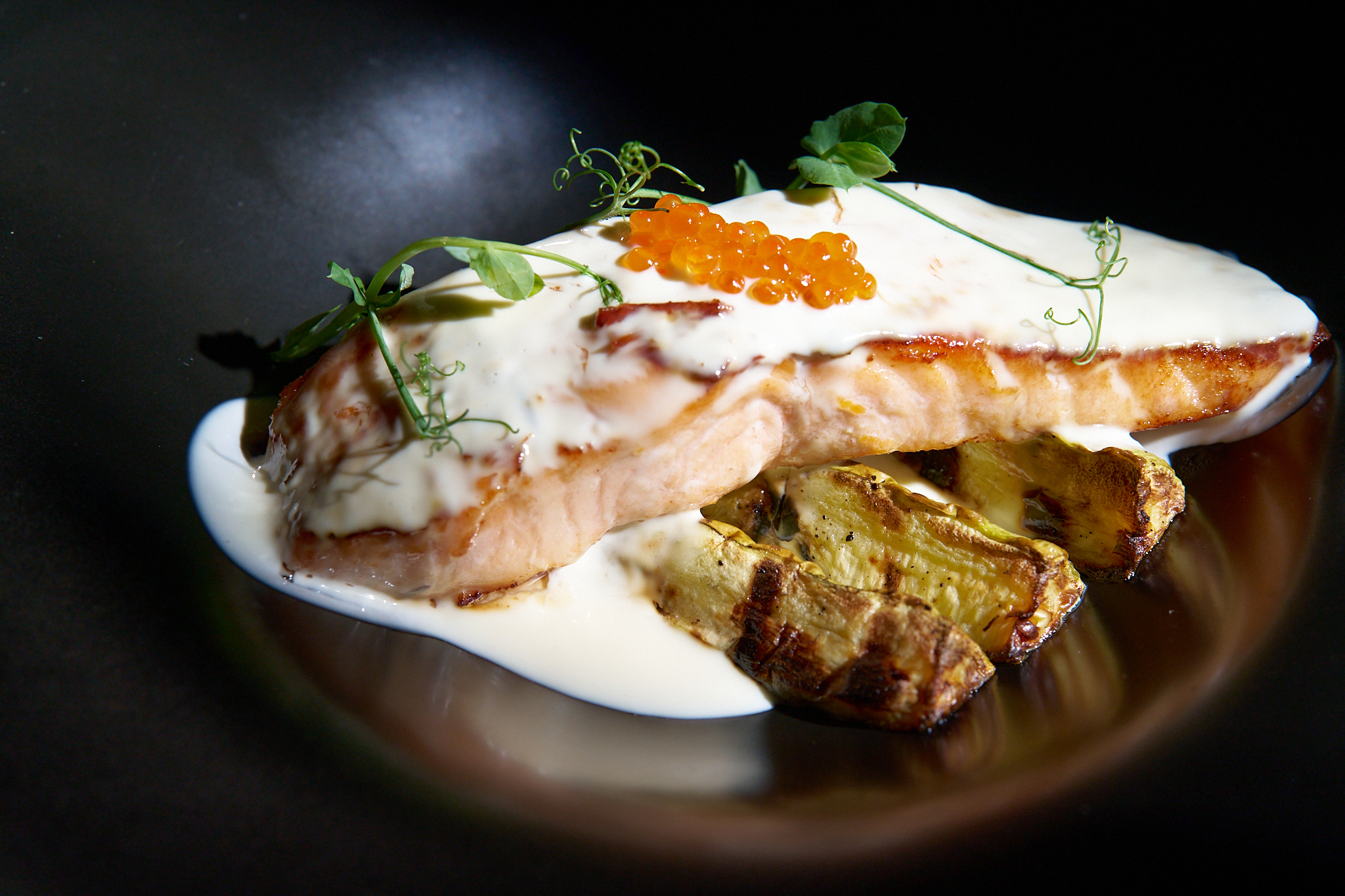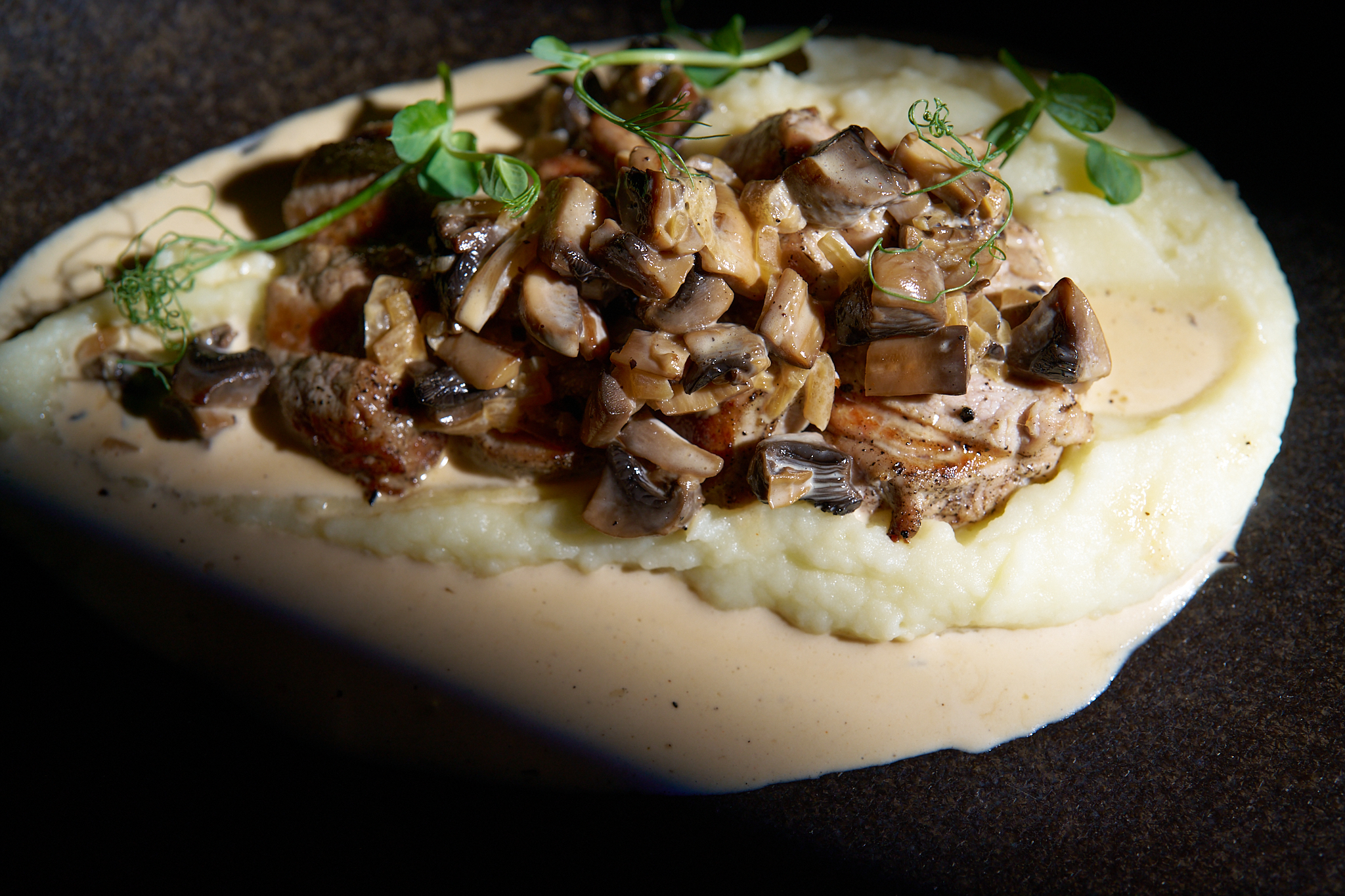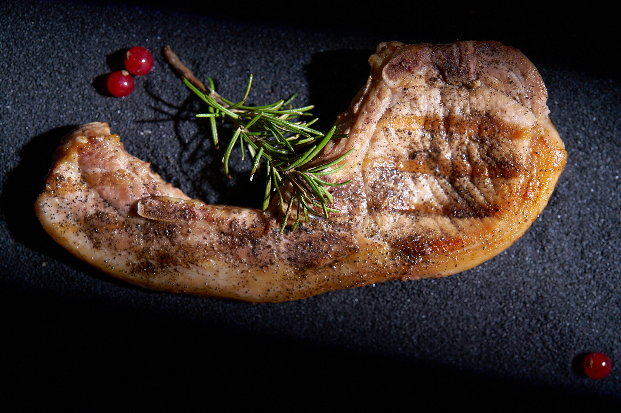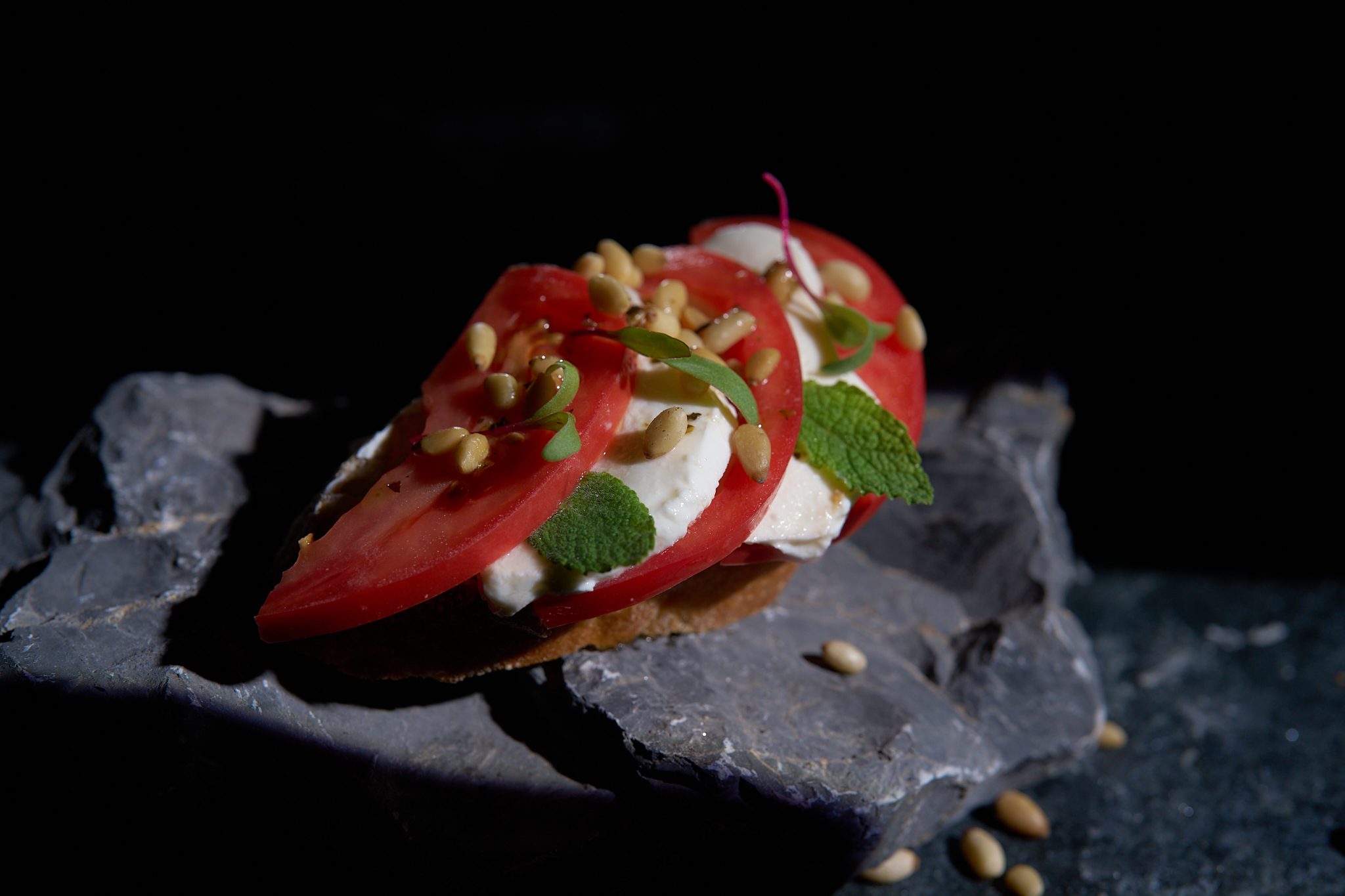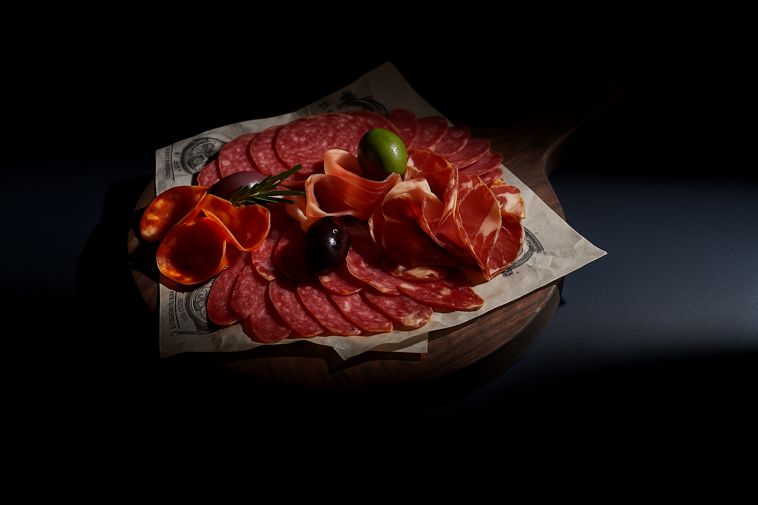 тънко нарязан ростбиф, свежа зелена салата, хрупка краставица, чери домати, печено червено цвекло, с финален акцент с дресинг от вишня и поръска пармезан на люспи