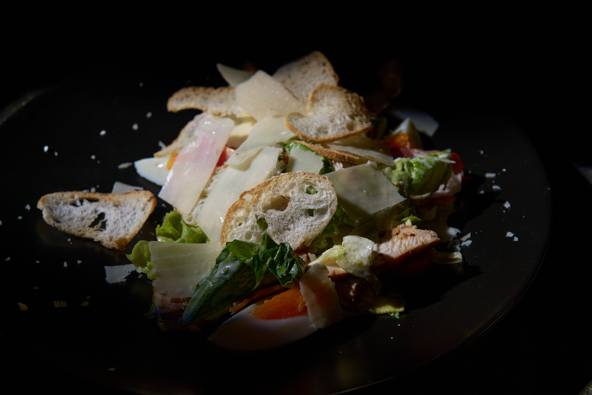 Салата Айсберг и Романа, пилешко филе и бекон на грил,хлебен чипс пармезан и дресинг Цезар