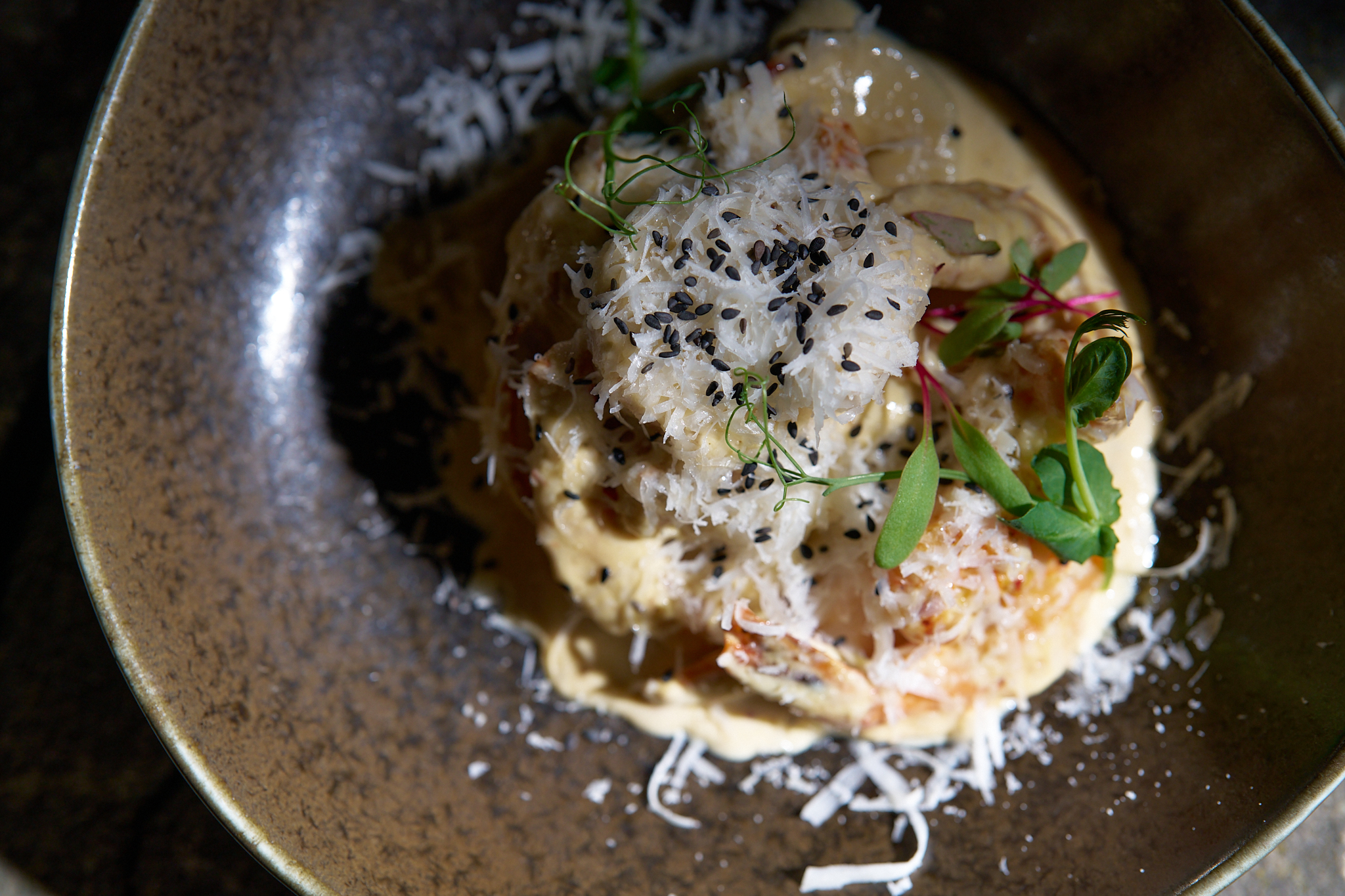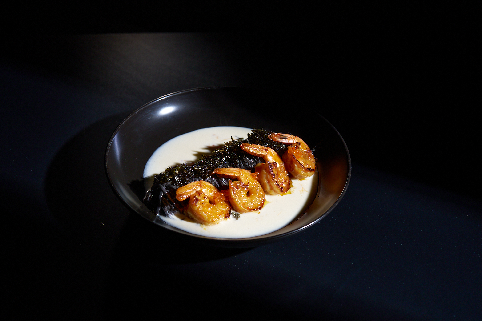 Деликатна паста с интензивен морски вкус, обогатена със сочни скариди и чипс от Нори с ядки